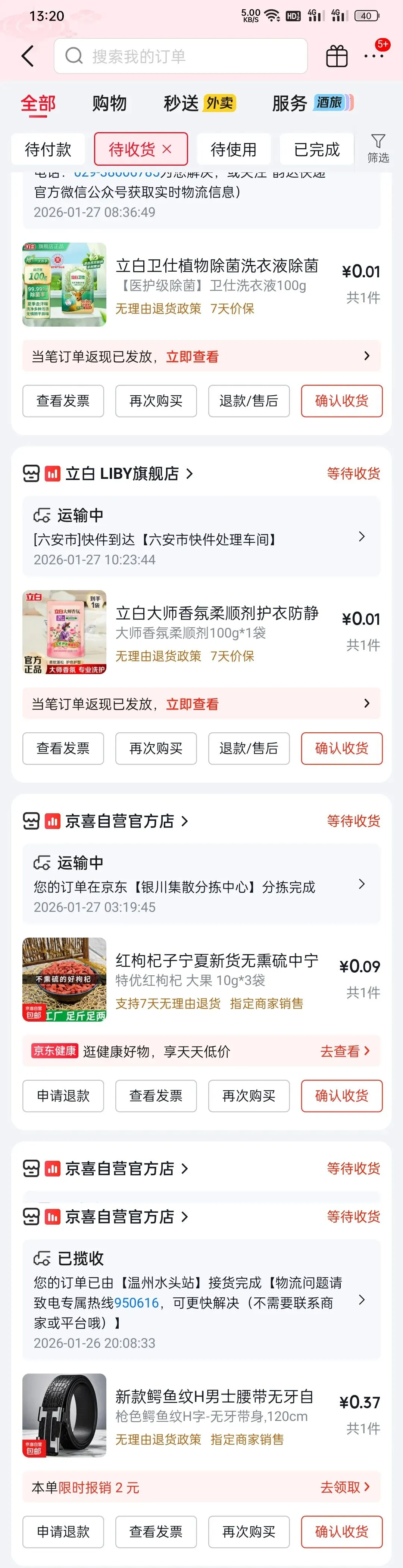 下边是我在京东买的东西,