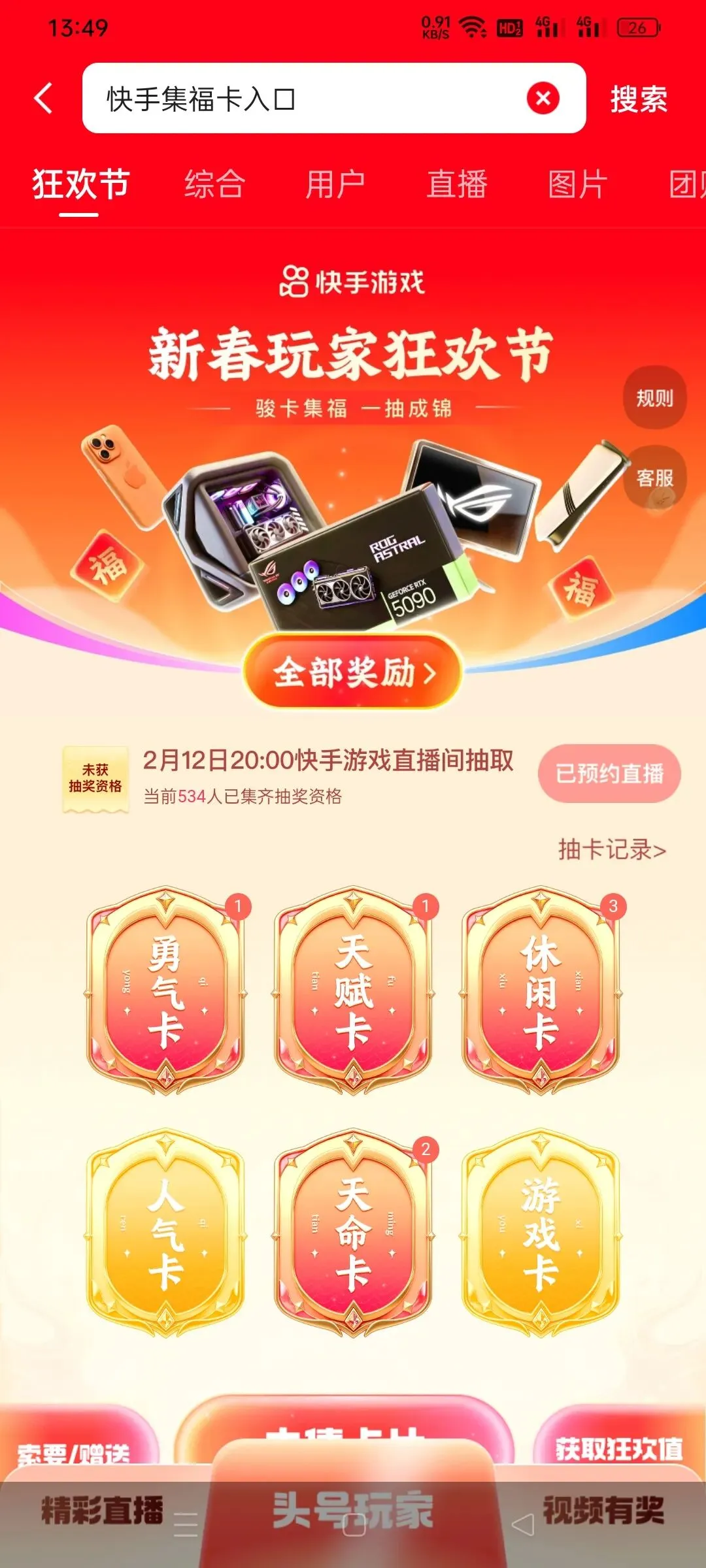 快手:现在也已经开始集卡了,搜快手集卡新春集卡入口
