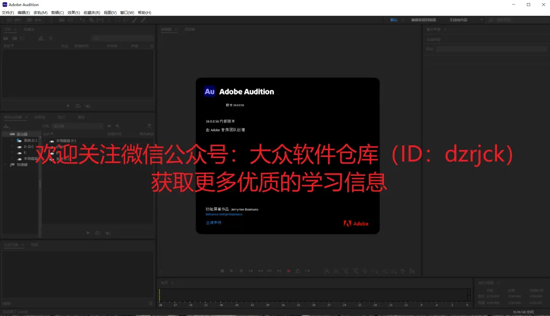 Adobe Audition是一个完善的多声道录音室,功能强大、界面明晰,设计得很人性化,可提供灵活的工作流程并且使用简便。无论是要录制音乐、无线电广播,还是为录像配音,Adobe Audition中的恰到好处的工具均可为您提供充足动力,以创造可能的最高质量的丰富、 细微音响。