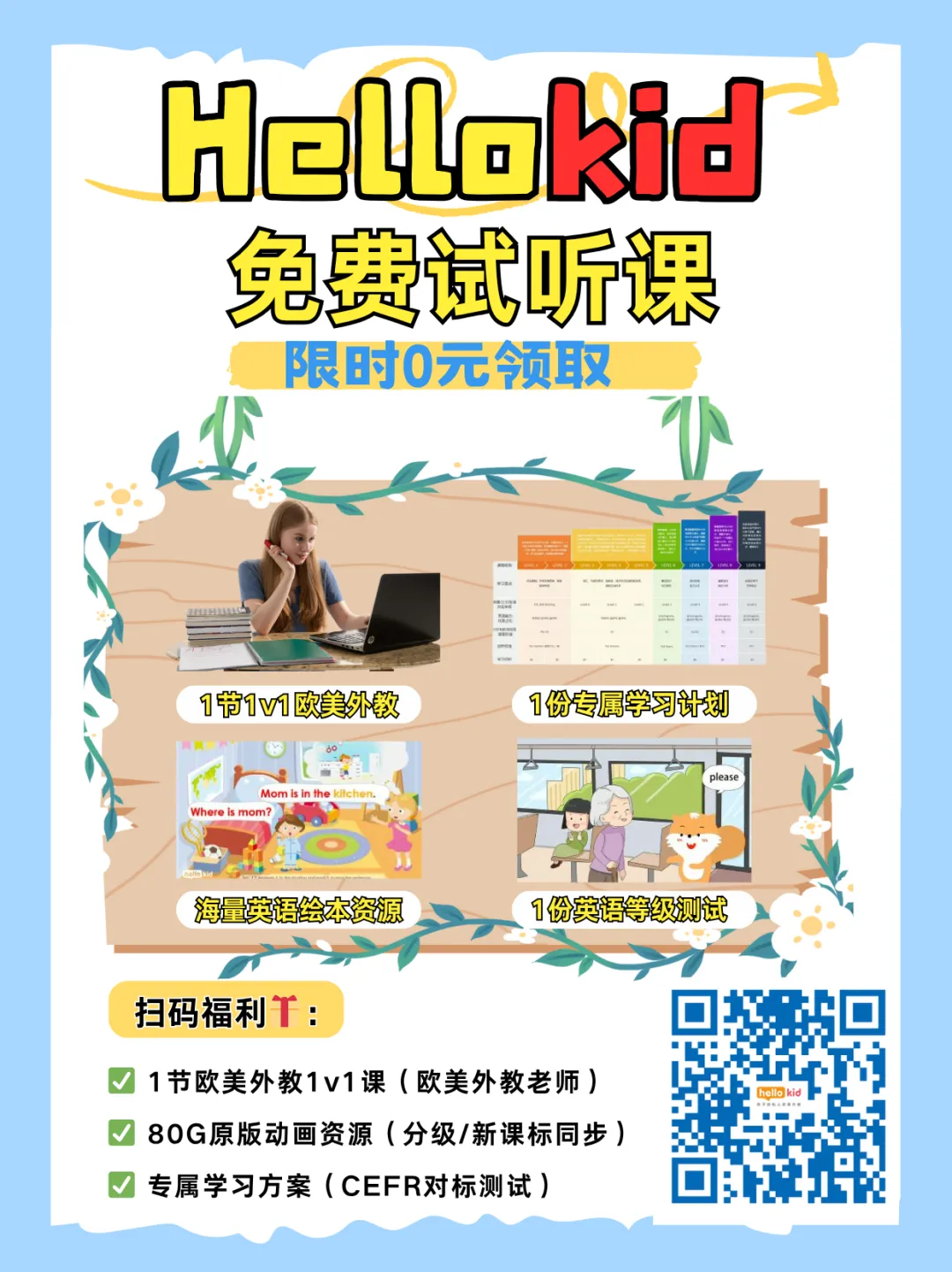 👇 扫码免费领取 hellokid 试听课(限量)👇