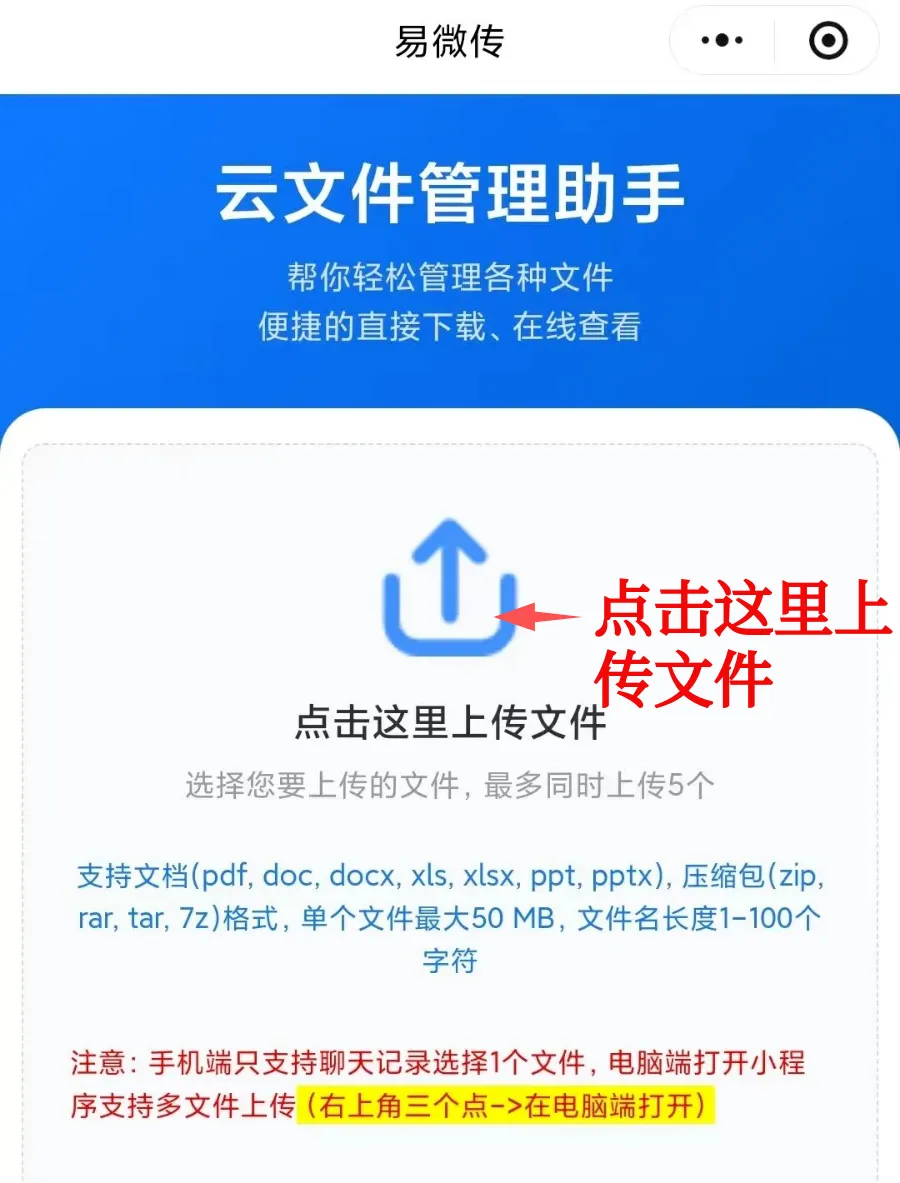今天给大家介绍一个很多人都在用的小工具,操作非常简单,只需简单的几个步骤就能搞定。微信文件直传最省事:不用电脑手机来回拷,把招聘表/PDF发给文件传输助手,打开“易微传”直接从“聊天文件”选中即可直接上传,跳过本地查找步骤。我就一直习惯用手机操作,特别简单省事。而且点开链接就能直接预览或下载,体验特别好。