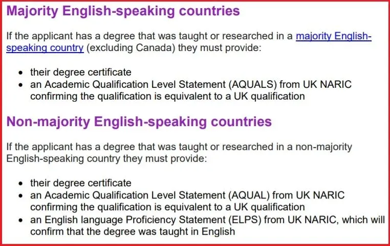 如果说当事人的学位课程是英语授课,例如说持有的是来自加拿大的学位,并且该学位主要授课语言是英语(而非法语)。