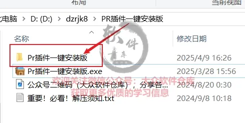 2.双击打开解压出来的PR插件一键安装版文件夹;
