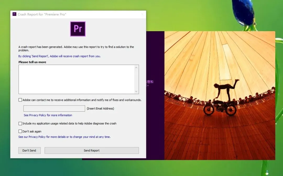 14.如果打开Pr软件崩溃报错,例如: