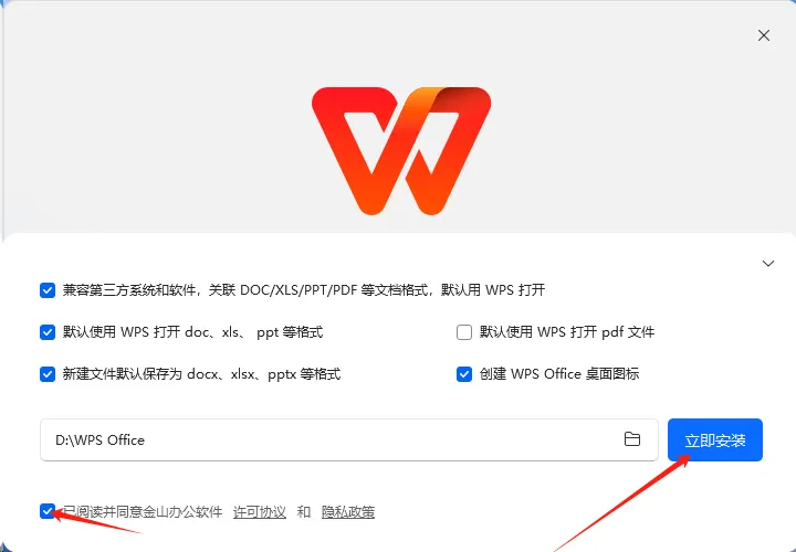 第3步、勾选“已阅读并同意”选择按照位置后点击立即安装