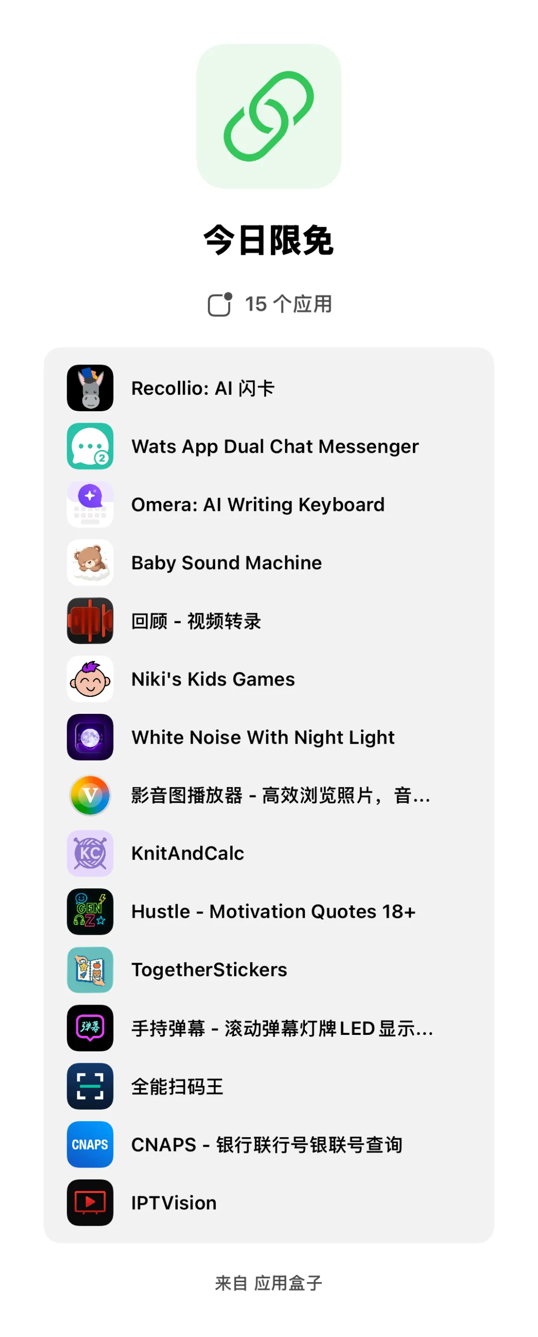 iOS丨App限免:拿下!银行联行号查询、二维码助手、滚动LED、睡眠白噪音、写作键盘、闪卡制作、流媒体播放器、双账号登录等工具与游戏!