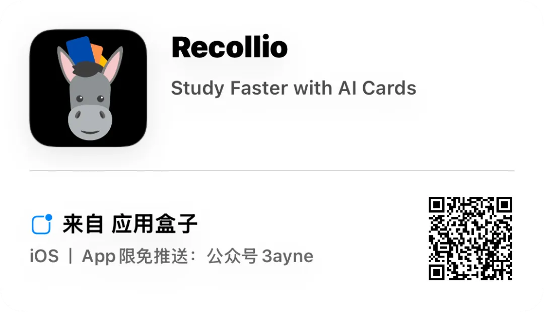 应用介绍:Recollio将任何文本转换为智能抽认卡,在最佳时机安排复习,并跟踪您的进度,因此您可以在每天几分钟内掌握课程、语言或考试准备。