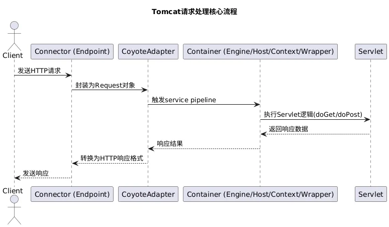 publicclassCoyoteAdapterimplementsAdapter{@Overridepublicvoid service(Request req,Response res)throwsException{// 复用底层Request对象,包装成Servlet请求HttpServletRequest httpReq =((Request) req).getRequest();HttpServletResponse httpRes =((Response) res).getResponse();// 直接调用Container的service方法,无额外拷贝connector.getService().getContainer().service(httpReq, httpRes);}}