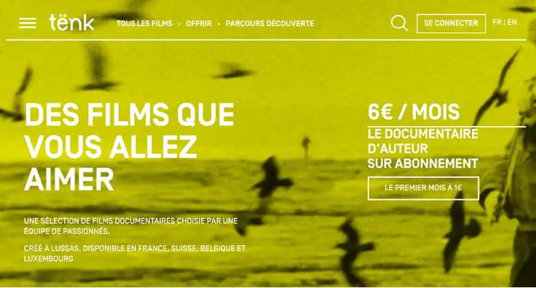 Tënk是2016年创建的流媒体平台,主要提供世界各地的参加电影节的作者纪录片,目前只有一些法语国家可以享受它的服务。为了避免淹没许多作品,网站每周都会更新资源,电影上架之后的可用期为60天,过期就会下架。