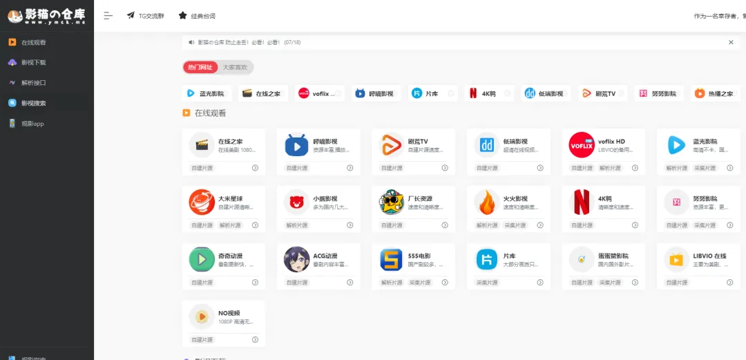 电脑观影必备神器,追剧超轻松 大家好,我是程序员小怪,一个资深的互联网黑科技软件玩家。每天给大家更新各种免费手机软件、各种好玩有趣的功能福利、高效率工具! 言归正传,最近大家在后台问我,有没有一款能在电脑端追剧的网站,因为现在每个剧在不通的影视网站,来回切换真的很麻烦啊。你说巧不巧,小怪就知道这么一个神器的网站,自己也一直在追美剧:话不多说,网站的名字叫做:影猫の仓库,这是一个在线免费影视合集资源库,里面收录了全网最优质的影视网站,无需下载,安卓苹果电脑都支持在线使用!! 这个网站都提供在线观看、影视下载、解析接口、影视搜索以及一些观影app,包含好几十个影视网站,而且这里面的视频都是 高清 无VIP的,轻松找到你喜欢的影视! 影猫の仓库 电脑端 这个仓库收录了近 50 个优质的影视网站,并且网站资源基本上都是4K蓝光画质,解析速度很快、无卡顿。页面布局也非常的人性化,轻松找到你需要的资源 要说小怪最喜欢 哪个网站进行追剧?那非 4K鸭 莫属了。小怪自己感觉这个网站资源很是丰富,最新电影没几天的都能找到,追美剧更视不在话下! 最近比较火的 wai太空de莫扎特 也能找到 而且是超清版,注意不是枪版奥!! 免责声明:这些资源皆来源于互联网公开分享的内容,仅用于个人学习使用,请禁止用于商业用途和倒卖,如真正需要,请支持版权方。 网站资源非常丰富,包含的影片种类超级多,可以选择不同地区、年代和语言。喜剧、爱奇、恐怖、动作、科幻、战争、农村、武侠……应有尽有,拒绝剧荒! 小 结 原创不易,坚持更不易,希望我的公众号对你是一个有用的公众号,对你有所帮助,记得将公众号【星标⭐置顶】可获取最新资源,阅读完后在文章末尾点击「打卡」支持一下小怪! 以上就是今天的全部内容了,喜欢的小伙伴赶紧下载吧~ 希望能够得到大家更多的支持(打卡),喜欢的就点击一下右下角的”在看” 谢谢! 下载安装 关注「怪咖玩机」,回复关键词20220820 获取网址!