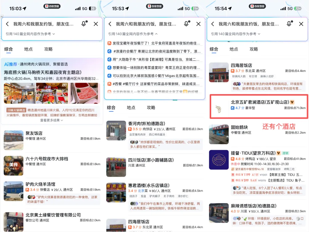 2.RAG这能力,你瞅瞅搜这内容,搜啥呢?搜百家号内容我都觉得靠谱,搜携程的攻略…咱也不信任你能搜出来跟「本地生活」相关的结果啊。
