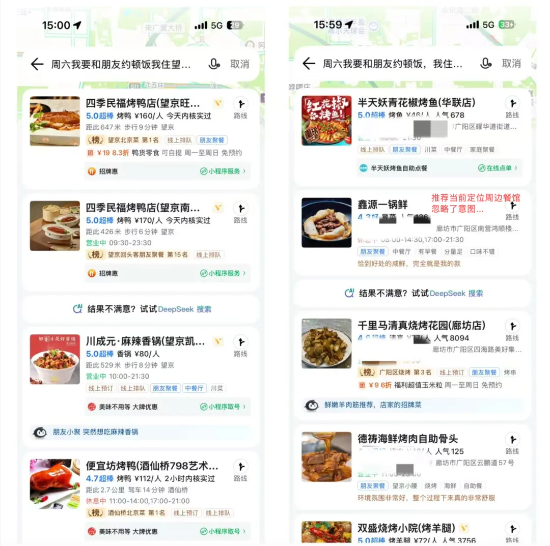 1.百度你可长点心吧,明明是做搜索起家的,这个并不算长难的query理解不了吗?为什么要推荐「我当前定位」周边的餐馆啊??我和朋友来通州的机票能给报了吗???
