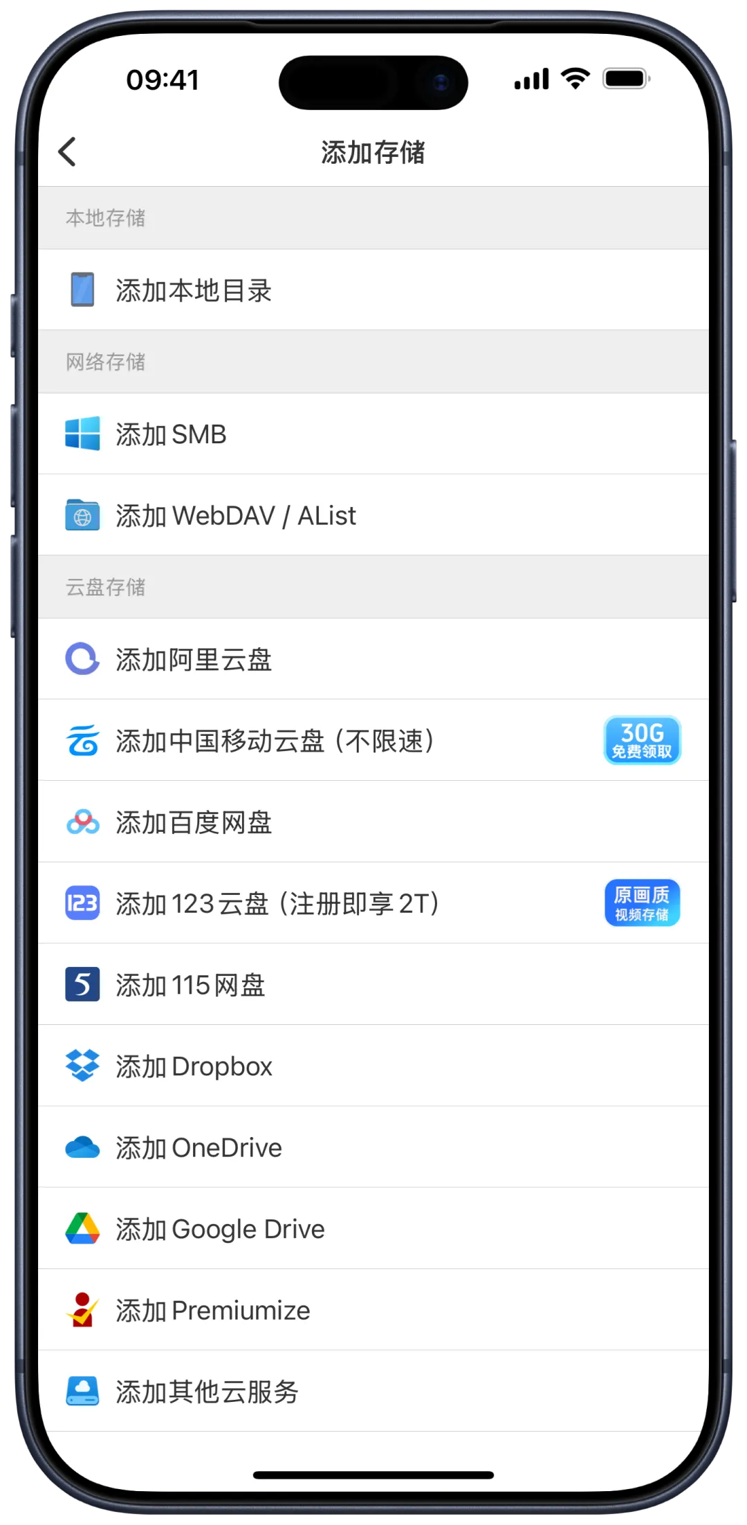 VidHub 支持阿里云盘、百度云盘、115网盘主流网盘,还支持中国移动云盘、123网盘等小众云盘;支持WebDav/SMB协议、alist挂载;还支持Google Drive、one drive等外网云;Emby、Jellyfin、Plex、飞牛云等专业媒体服务器;支持本地目录。无需复杂设置,一键接入所有观影渠道。