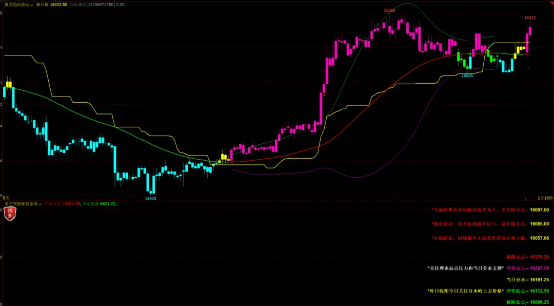 苍穹聚宝波段主图:支撑压力,顶底画线,k变色