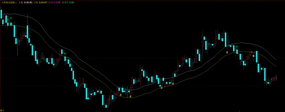DRAWTEXT(涨条件,LOW,’多’),COLORYELLOW,FONTSIZE16,VALIGN0;