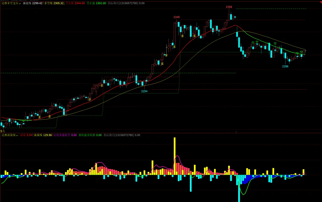 金蟾趋势多空主图:趋势多空线,多空K变色,支撑压力突破画线