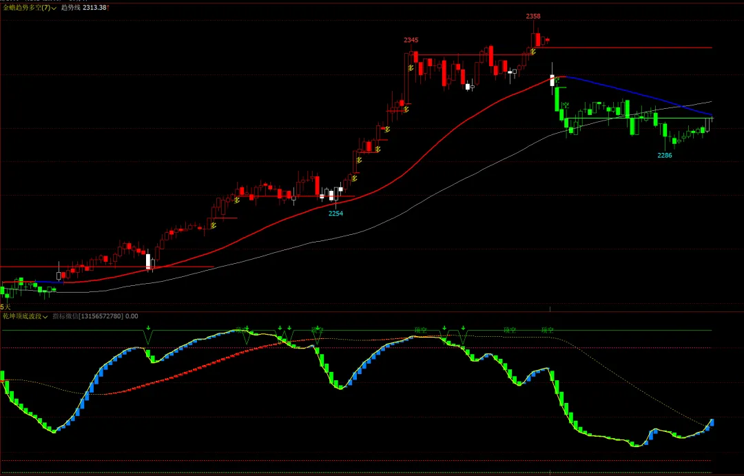 乾坤顶底波段幅图:红绿多空柱,顶底信号,趋势信号