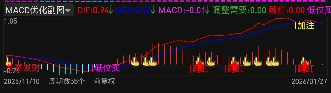 低位买 := CROSS(DIF, DEA) AND DIF < 0, NODRAW;