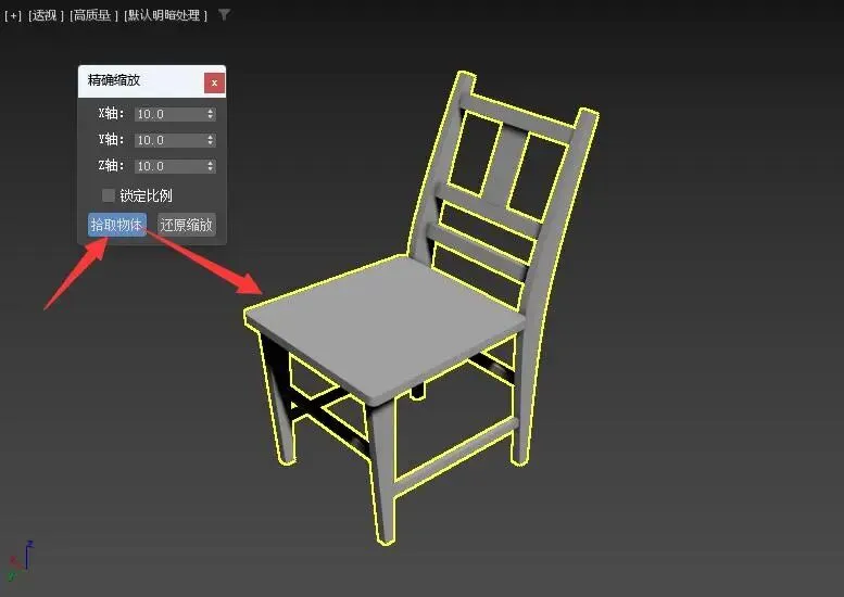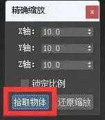 还原缩放:单击该按钮,拾取对象恢复原始大小比例。