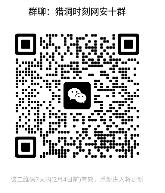 本公众号“猎洞时刻”旨在分享网络安全领域的相关知识,仅限于学习和研究之用。本公众号并不鼓励或支持任何非法活动。本公众号中提供的所有内容都是基于作者的经验和知识,并仅代表作者个人的观点和意见。这些观点和意见仅供参考,不构成任何形式的承诺或保证。本公众号不对任何人因使用或依赖本公众号提供的信息、工具或技术所造成的任何损失或伤害负责。本公众号提供的技术和工具仅限于学习和研究之用,不得用于非法活动。任何非法活动均与本公众号的立场和政策相违背,并将依法承担法律责任。本公众号不对使用本公众号提供的工具和技术所造成的任何直接或间接损失负责。使用者必须自行承担使用风险,同时对自己的行为负全部责任。本公众号保留随时修改或补充免责声明的权利,而不需事先通知。