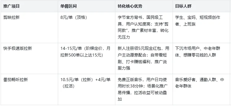 星子助推对接多个顶流APP拉新项目,不同项目的佣金、转化难度、目标人群不同,新手无需盲目跟风,按“低难度+高佣金+大流量”原则筛选,快速起量。2026年重点推荐3个项目(新手首选前2个):
