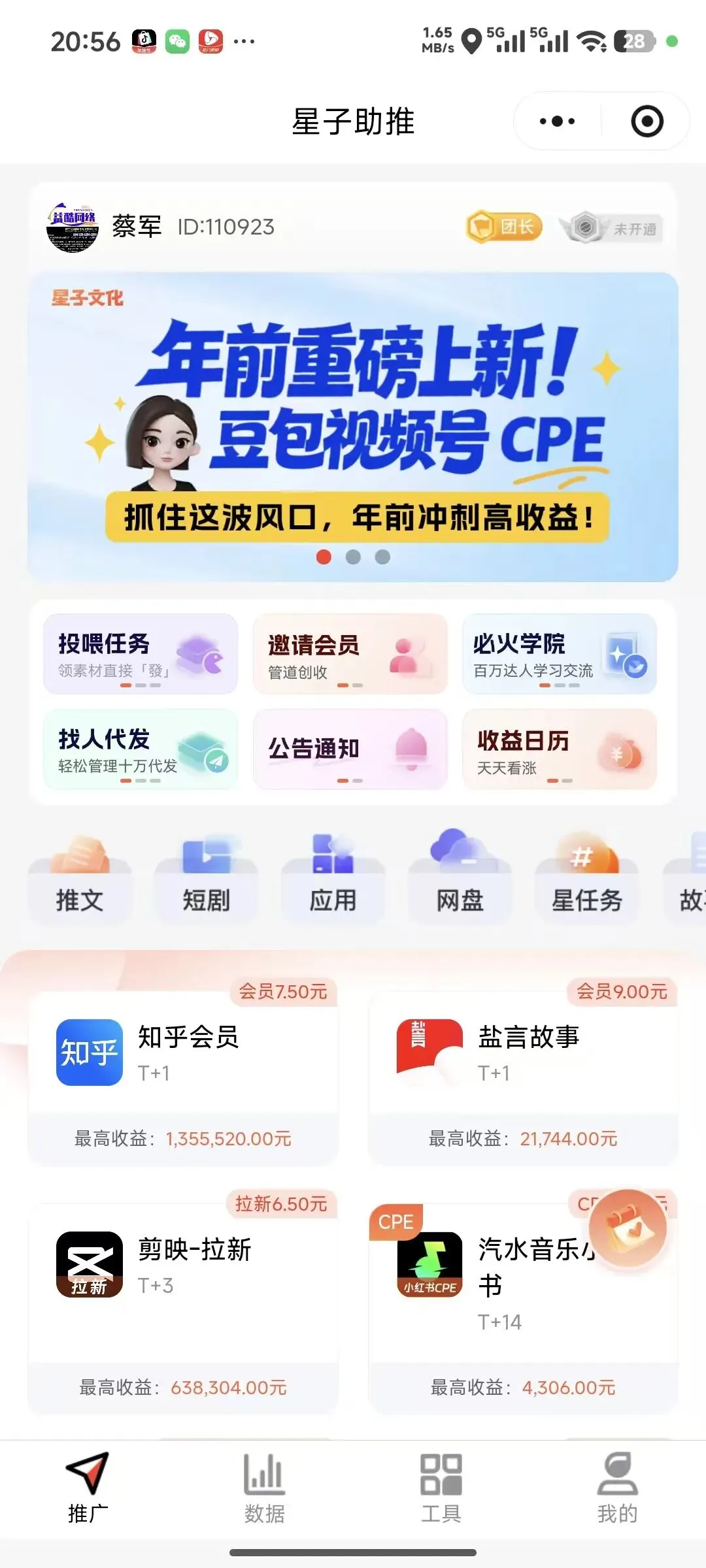 核心工具:剪辑用剪映(新手首选,支持“剪同款”一键生成视频);素材存储用百度网盘(保存官方素材包);数据监测用星子助推后台(实时查看拉新量、收益明细);海报制作用Canva(免费设计拉新海报,适配社群/朋友圈推广)。