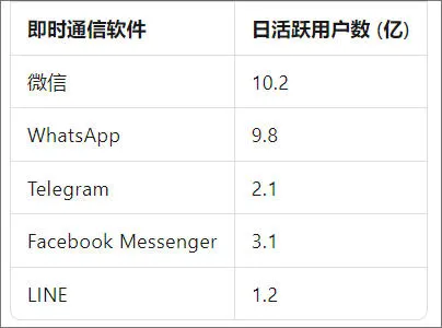 要知道,全球主流即时通信软件的日活跃用户都在1亿以上,微信的日活更是超过了10亿。