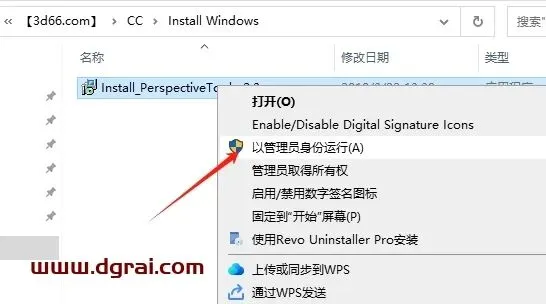 选择“Install_PerspectiveTools_2.3.exe”鼠标右键以管理员身份运行