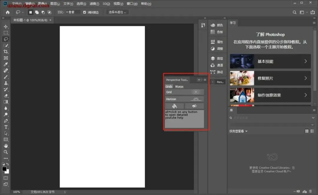 打开ps软件,新建文档,点击窗口-扩展程序-Perspective Tools 2