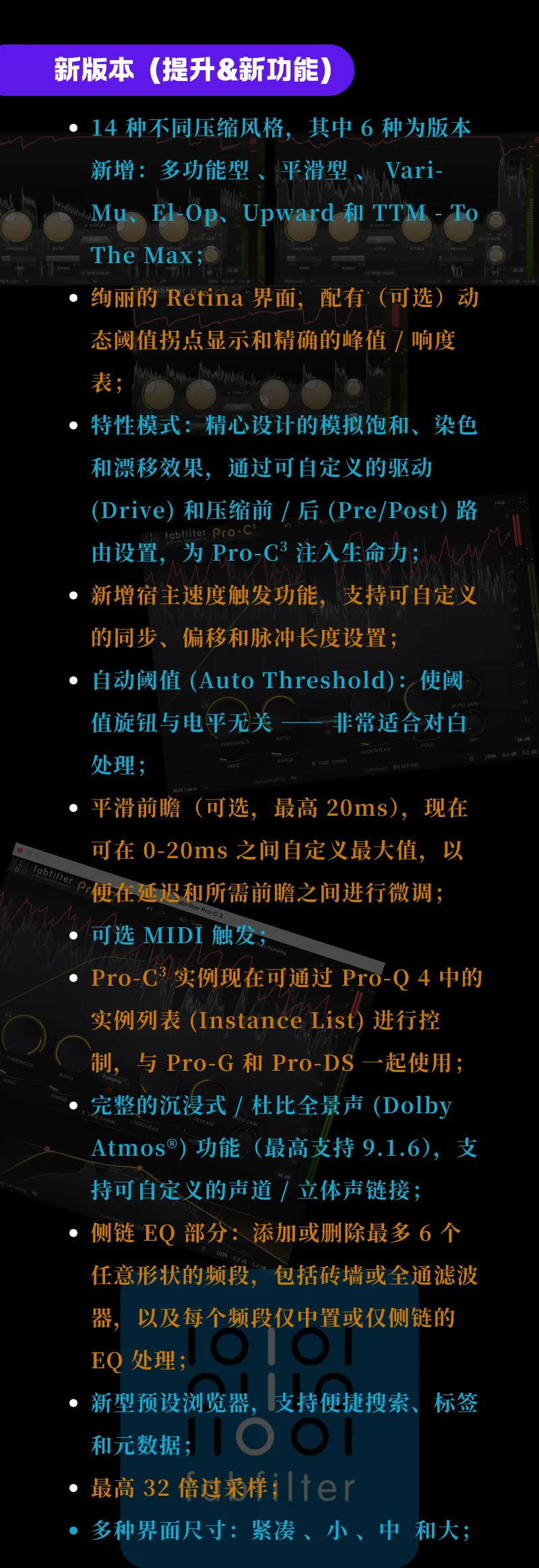 Fabfilter全能型·压缩插件——Pro·C3 『完美掌控你的声音』 ▼ 链接直达 ▼ https://e.tb.cn/h.7KtWIdqwt6g05pv?tk=38NeUhktgvr 周一至周五 10:00-18:00 Mon- Fri A.M.10:00 – P.M.6:00 欢迎到店试听 Welcome to the store for a trial.
