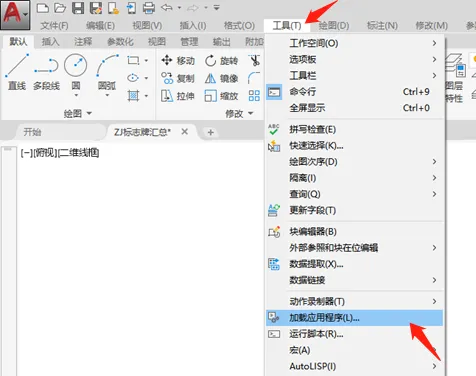 ● 打开CAD软件(使用的版本为2020),菜单栏选择工具,选择加载应用程序;