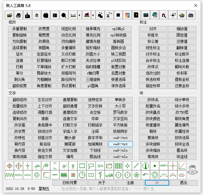 CAD制图软件是交通设计不可或缺的一个软件,其功能强大、使用方便,是每一个交通人的必备软件。而CAD插件,可以很好的提高CAD绘图效率。今天介绍的贱人工具箱(5.8版本),内置了200多种工具,是一个超级全能的工具箱插件。