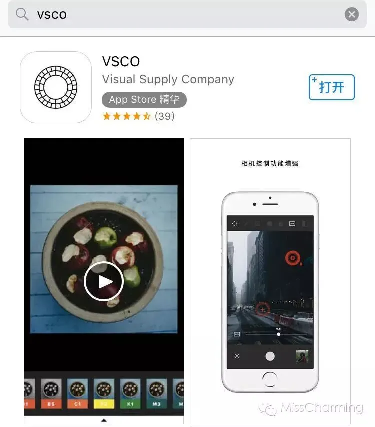 VSCO是博主最爱的一款APP。你们看到博主在微博(ID:MissCharming大小姐)以及大小姐搭配日记中看到的照片,大部分都由VSCO做后期调色。