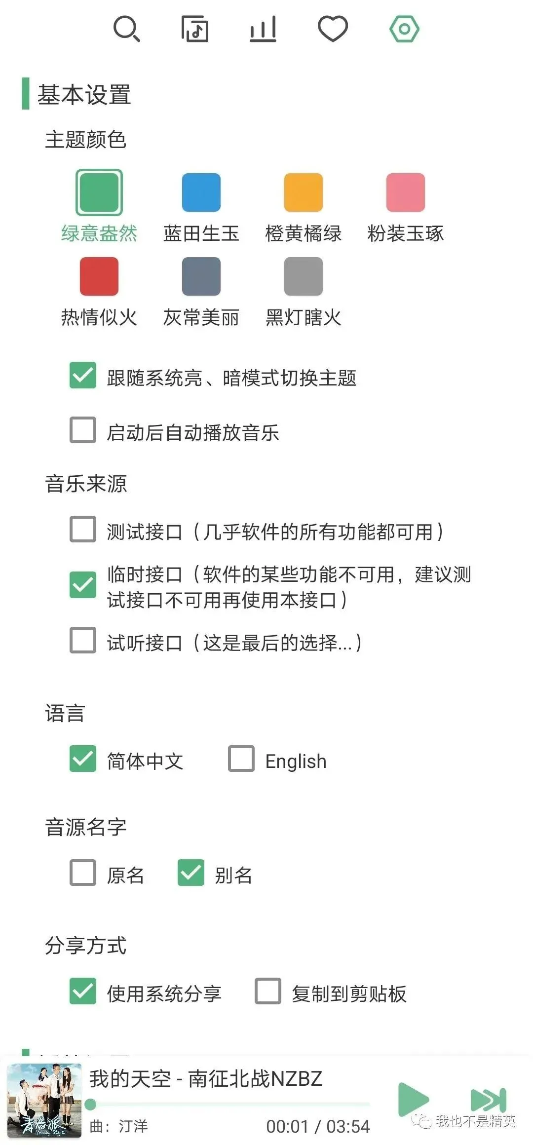 功能强大:支持循环播放,可以对你选择的歌单循环播放,支持多个平台查询,支持网易音乐、咪咕音乐、百度音乐,在设置界面就可以设置主题,设置音乐来源,设置列表随机播放、顺序播放等。