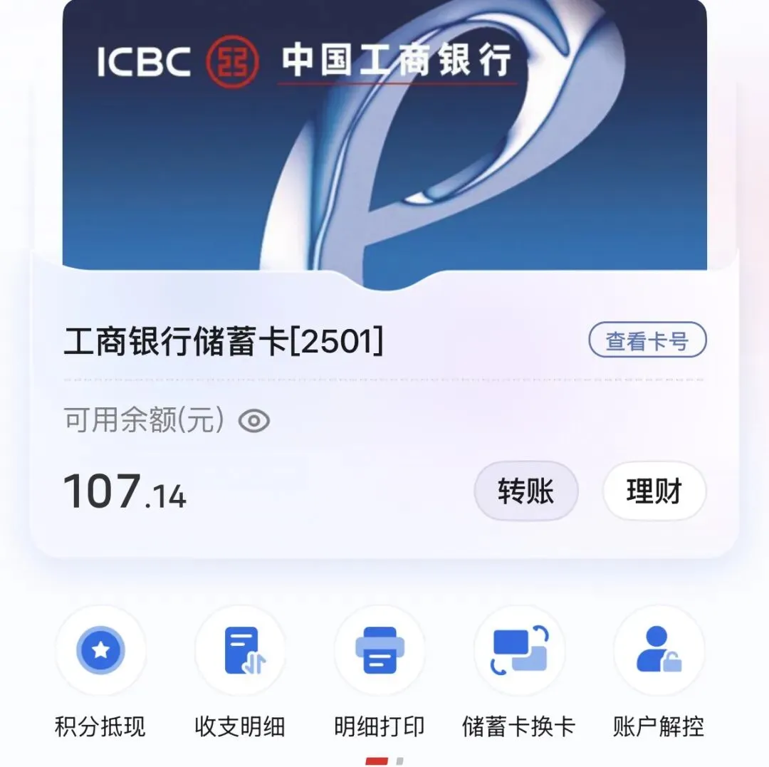 如果我要查询工行卡尾号2501的余额,只需点击对应的该银行卡号,出现了可用余额的具体金额。但是,资金的收支明细还是需要在工行APP查询。