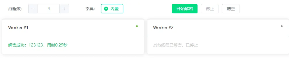 3. 解密工具:仅用于合法的密码找回,建议合理设置线程数避免浏览器卡顿