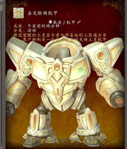 明天就要正式上线至暗之夜前夕事件了,而其中最吸引大家的应该就是坐骑:圣光锻铸机甲了。