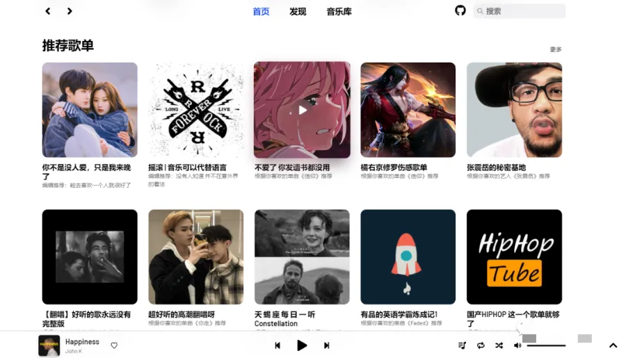 大家可以看到下图这个界面是不是跟网易云官方软件,几乎一样?因为作者模仿(致敬)的就是网抑云的界面和UI。