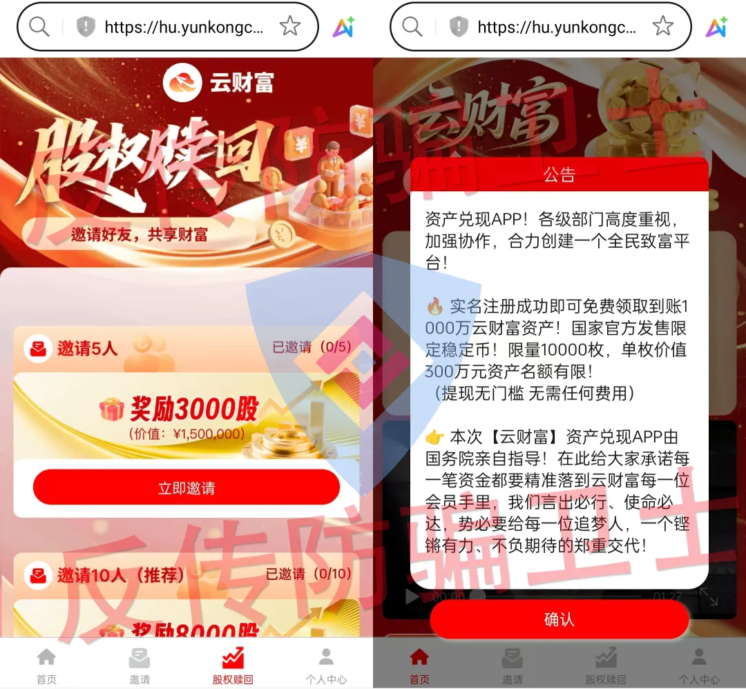 5、假冒 “上合共济” APP:谎称 “实名注册获 200-800 万共济基金”“黄金券可兑实物黄金或回购”,网站 IP 在美国洛杉矶(非法网站);编造信息注册即显 200 万基金,诱导上传银行卡、支付宝截图等信息,后期以 “提现费” 骗钱,还可能用用户账户洗钱。