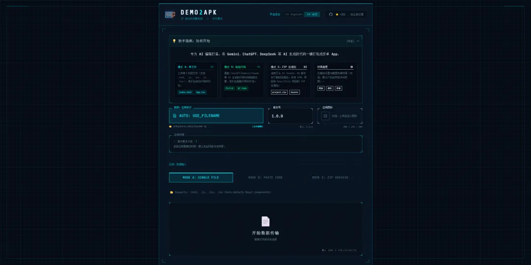 今天必须给你们安利一个神仙工具:demo2apk,专门解决「把前端项目/AI生成Demo快速转成Android APK」这个刚需,全程不用碰Android开发那堆复杂配置,小白也能一分钟搞定!