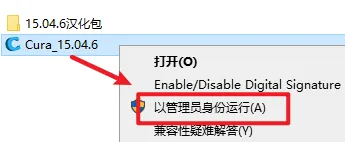 2.打开刚刚解压的文件夹,选中“Cura_15.04.6”右键选择“以管理员身份运行”