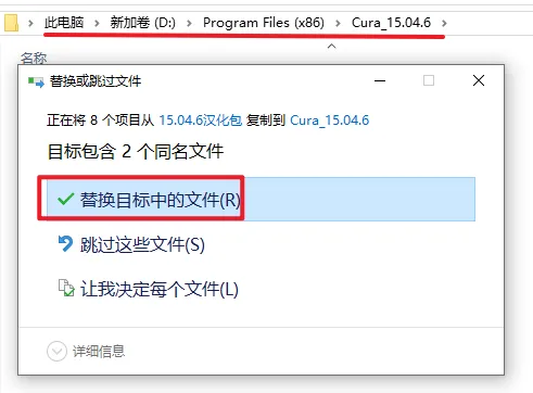 15.粘贴复制的文件到该路径下,选择“替换目标中的文件”