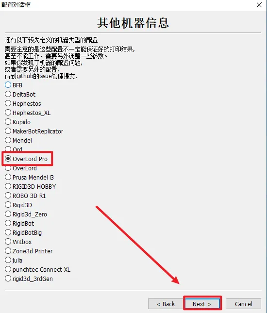 19.在“其他机器信息”界面,选择选择“OverLord Pro”或者“OverLord”,点击“Next”
