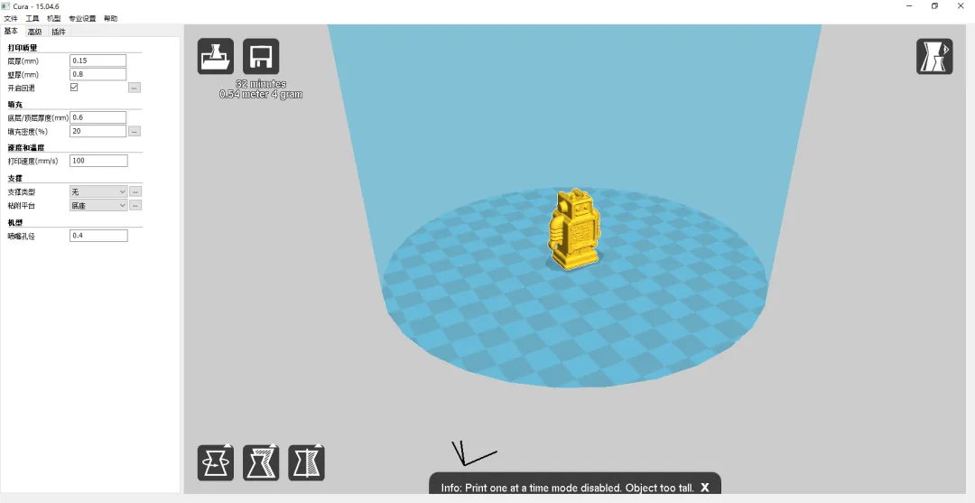 Cura是荷兰3D打印公司Ultimaker推出的一款开源切片软件,该软件包含了所有3D打印需要的功能,分为模型切片与打印机控制两大部分,是目前所有3D打印模型软件切片最快的上位机软件。该软件操作界面简明详尽,易于上手,且可根据不同打印机和打印材料,对物体进行调整和设置,能力强悍,是开源切片软件的行业标杆。