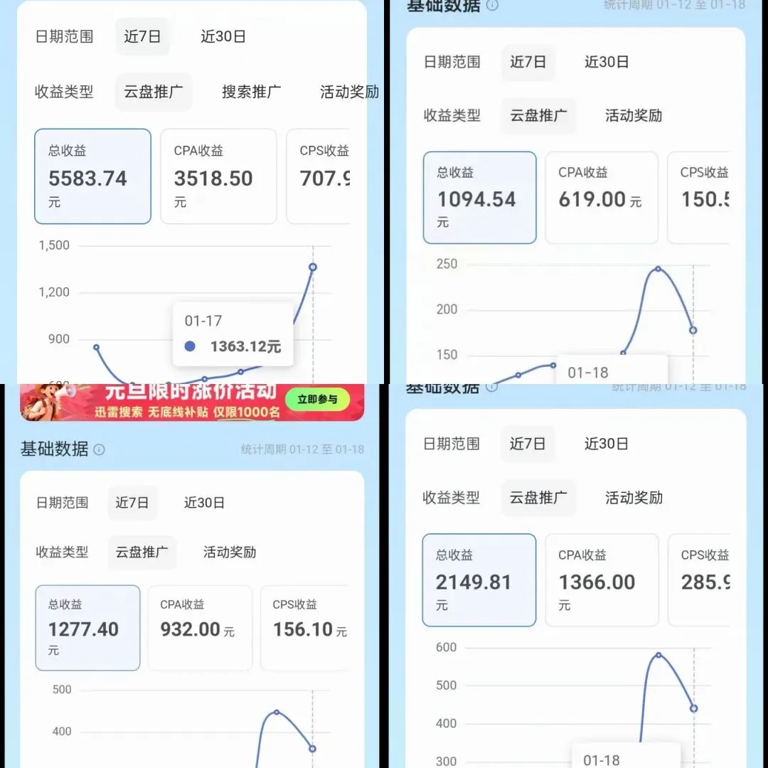 看看元旦过后这7天的数据,最低收益都有1094元,最高的能拿到5583元。别瞧不上那些看着不起眼的小项目,总有人在默默赚大钱。
