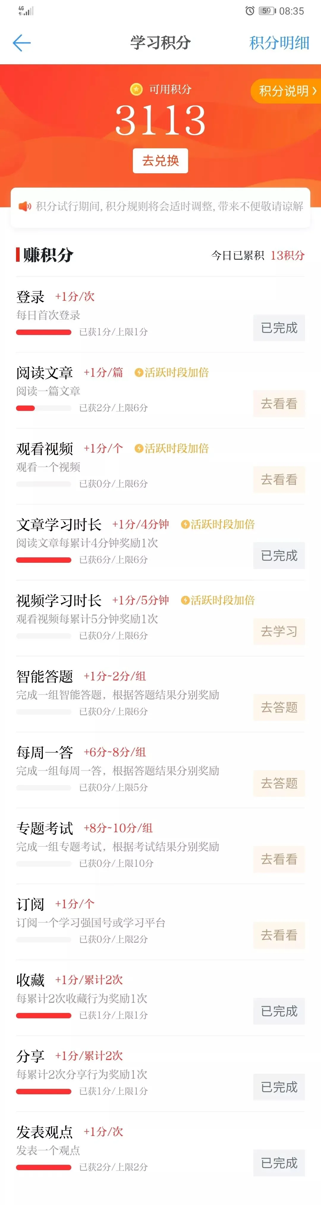 由原来每日最高可获8积分改为6分。由原来高效时间阅读4分钟文章可以累计2积分,改为全天阅读2分钟积累1分。(等于全天高效时间了)