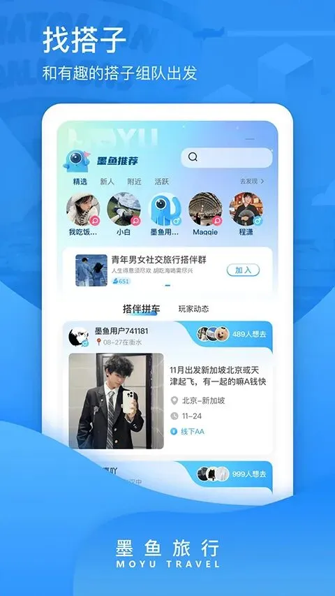 墨鱼旅行用户能发自由行邀约、拼团出游,找来自世界各地的志同道合驴友组队,旅行不再孤单反而更有趣味,这波结伴撒欢的快乐直接拉满~