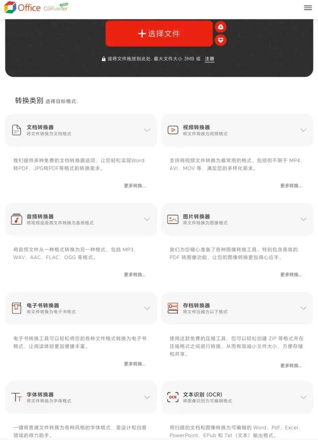 免费,文档视频都可以,OCR功能,可以把图像换可编辑的格式,不过最大文件只能支持3MB。