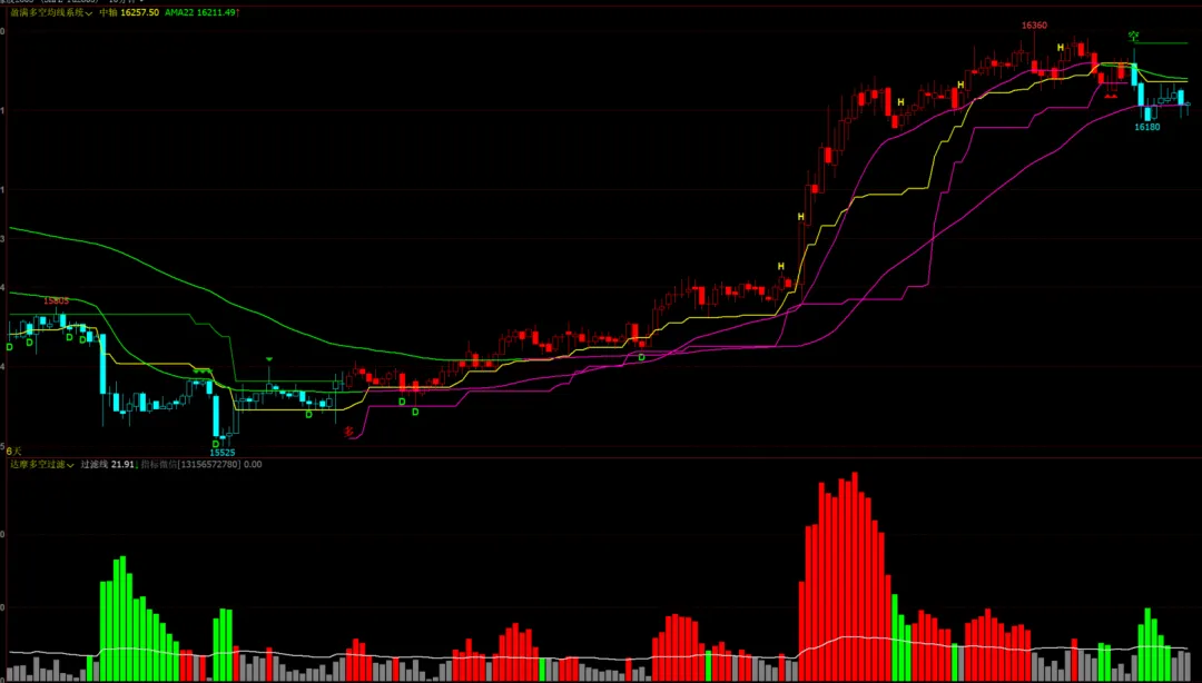 1、盈满多空均线系统主图+达摩多空过滤幅图,无未来函数!