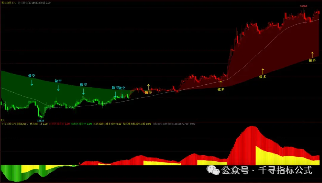 千寻反转信号指标幅图:多空红绿柱,黄柱反转